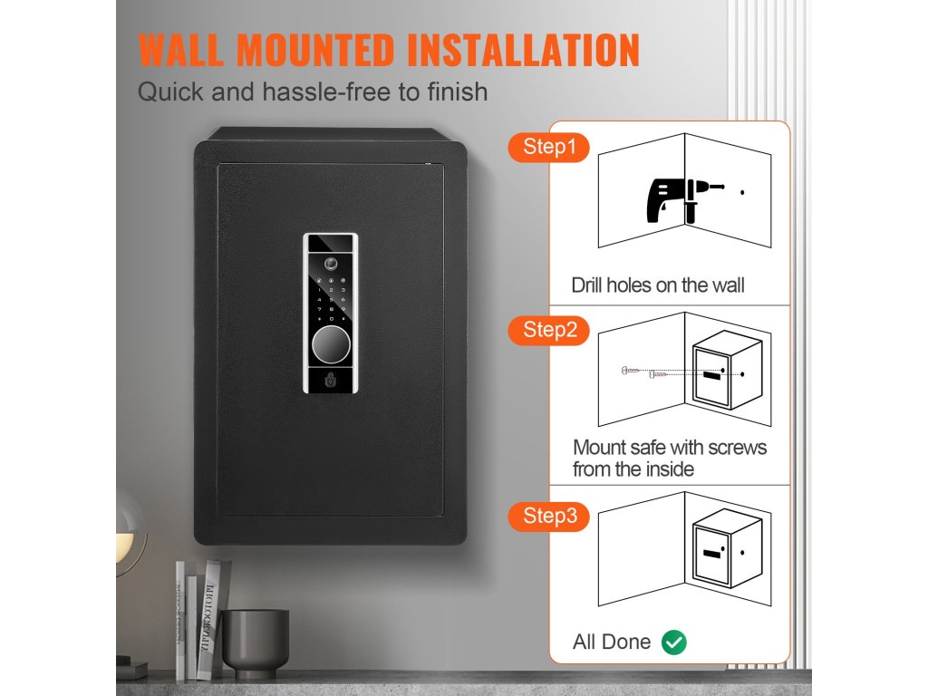 S kapacitou 2,2 kubických stôp poskytuje trezor VEVOR dostatok priestoru na uloženie. Môžete doň uložiť všetko od hotovosti a zlata až po dôležité dokumenty. Priestranný interiér umožňuje jednoduchú organizáciu. Vďaka tomu ľahko nájdete to, čo potrebujete, keď to potrebujete. Trezor je svojou veľkosťou ideálny na domáce použitie, pohodlne sa zmestí do každej miestnosti. Jeho priestrannosť zaručuje dostatok miesta pre všetky vaše najdôležitejšie predmety. Preto je ideálnou voľbou pre tých, ktorí chcú zabezpečiť svoje cennosti.