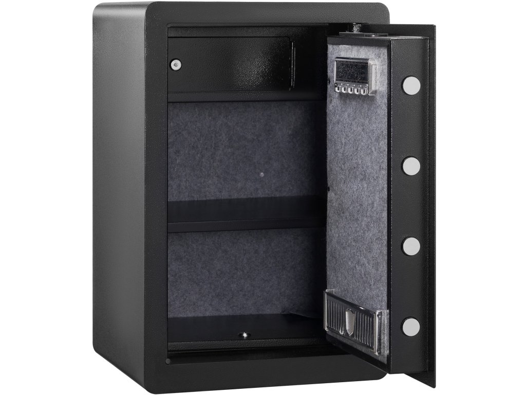 Ide o veľký domáci trezor. Je ideálny pre rodiny aj jednotlivcov. Do jeho priestranného interiéru sa zmestia desiatky predmetov. Či už potrebujete uschovať hotovosť, zlato alebo dôležité dokumenty, tento trezor vás pokryje. Veľká veľkosť zaručuje dostatok priestoru na usporiadanie všetkých vašich cenností. Vďaka tomu je mimoriadne praktický na zabezpečenie domácnosti. Vždy chcete mať všetko potrebné v bezpečí na jednom bezpečnom mieste. To z neho robí ideálnu investíciu pre každého, kto chce svoje poklady uchovať nedotknuté.