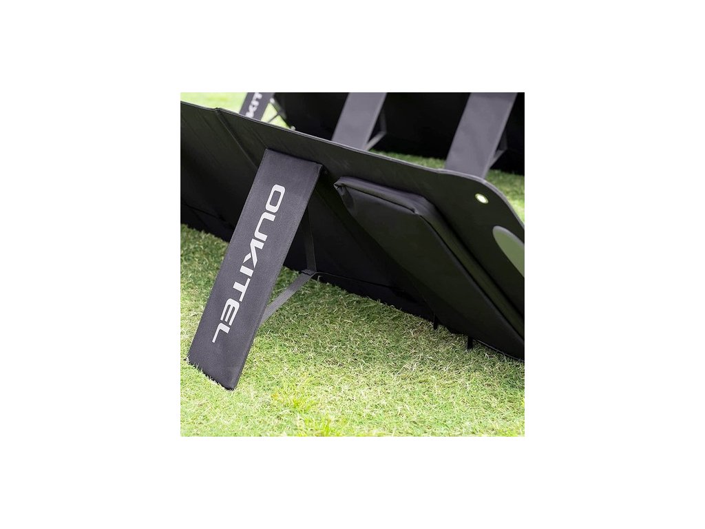 Az OUKITEL PV200 napelem összecsukható, így bárhová magával viheti. Az állvány ferdén dönthető, így a napelem könnyen energiát nyerhet a napfényből.