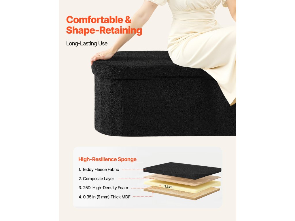 Ez a tárolóhelyes ottomán nemcsak a hálószobába, hanem a nappaliba, előszobába, öltözőbe vagy előszobába is alkalmas. Egyszerre szolgál kényelmes ülőhelyként és tárolóhelyként, sokoldalúságot és praktikus értéket adva otthonának.
