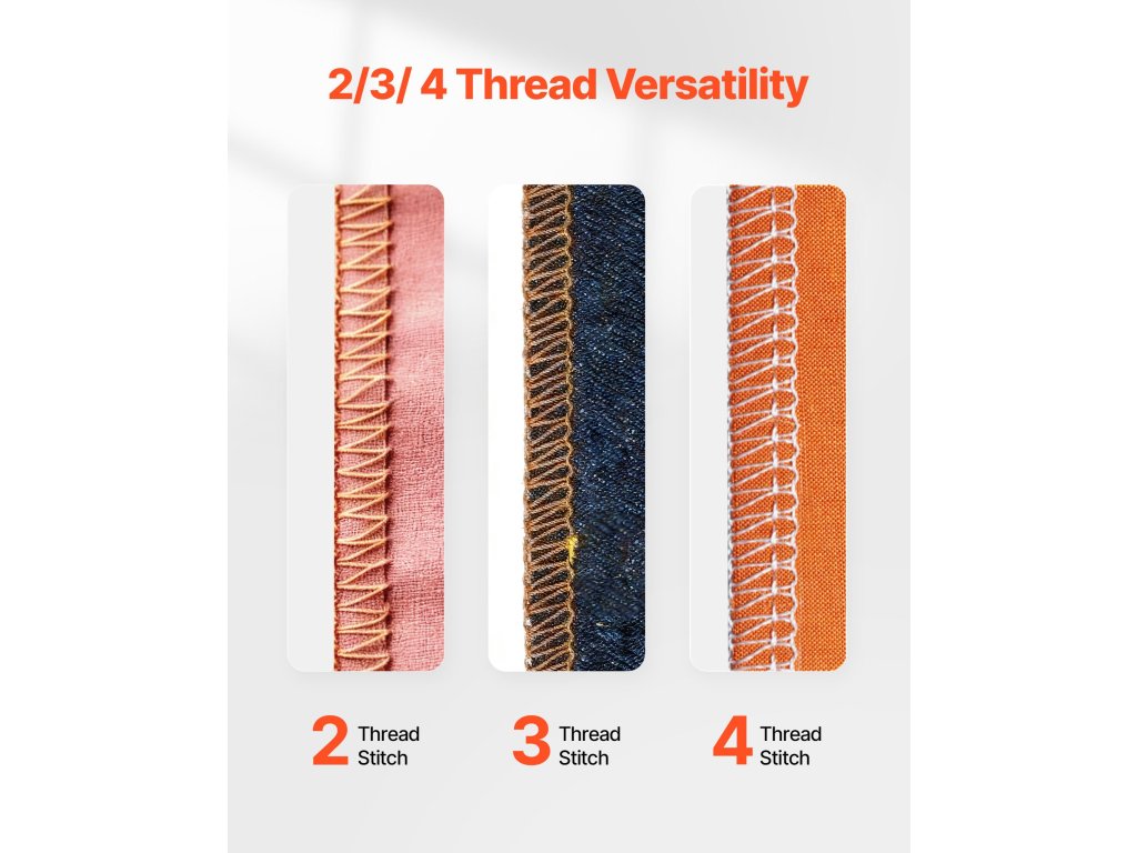 Szabadon válthat a 2, 3 és 4 szálas beállítások között. Az állítható öltéshosszúsággal kombinálva ez a varrógép a mindennapi javításokkal és az igényesebb élkikészítéssel is megbirkózik - egy gép, sok felhasználási lehetőség.