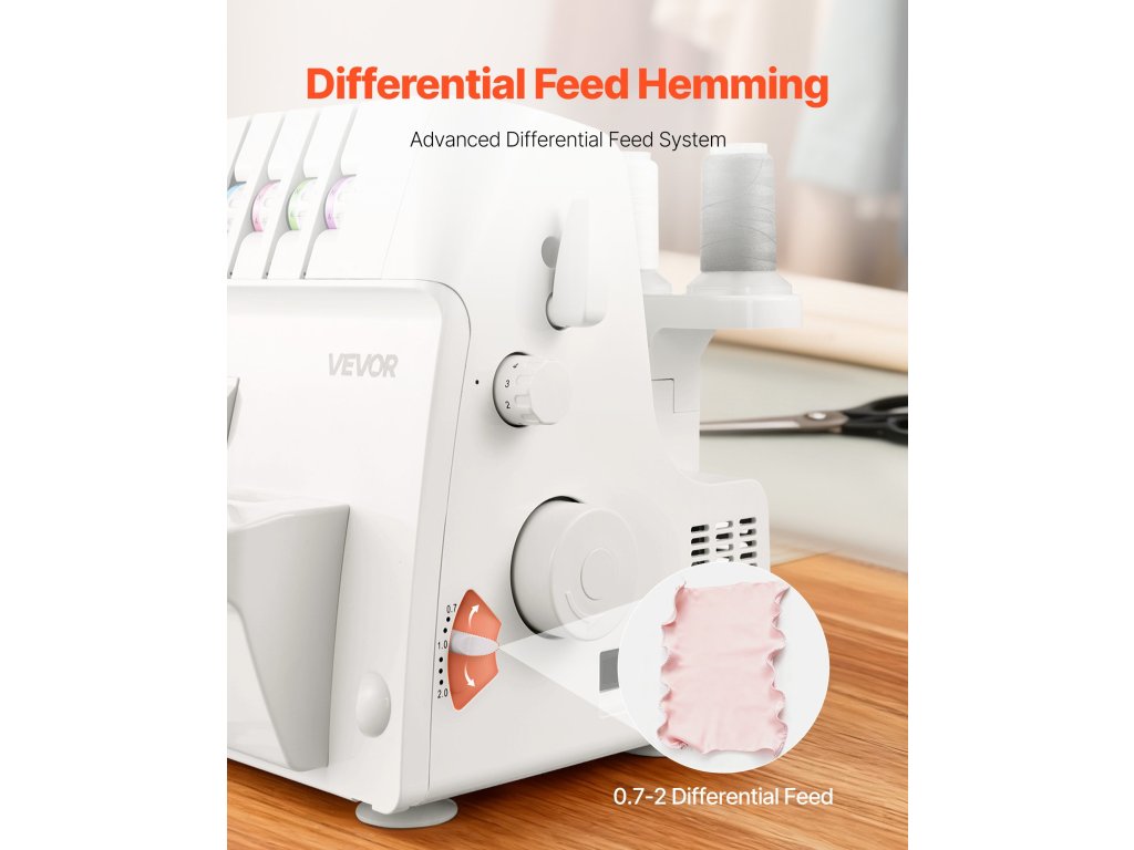 Ez a varrógép többféle öltéstípust támogat, beleértve az overlockot, a göngyölt szegélyt és a díszítő szegélyt. A vékony szövetektől a nehéz farmeranyagig ez az overlock magabiztosan igazít.