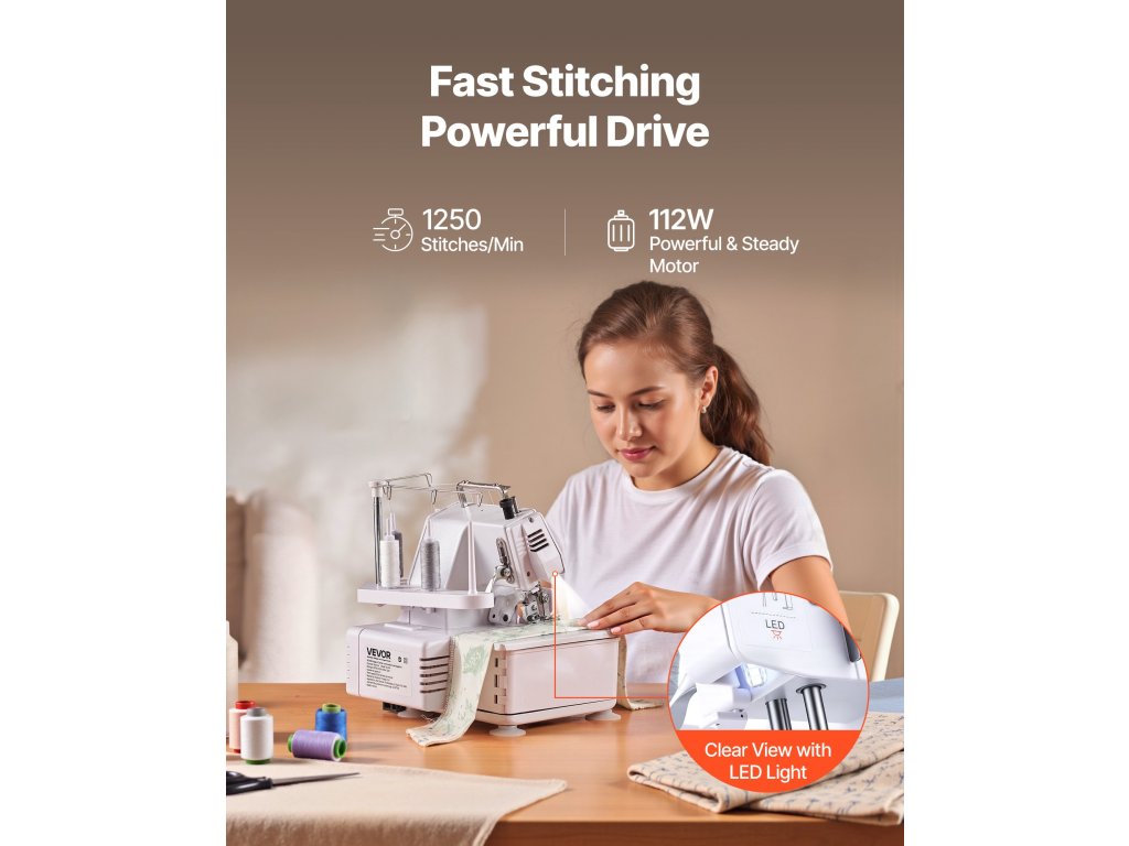 Overlock varrógép 1250 öltés/perc, 3 és 4 szálas, LED-del, fehér
