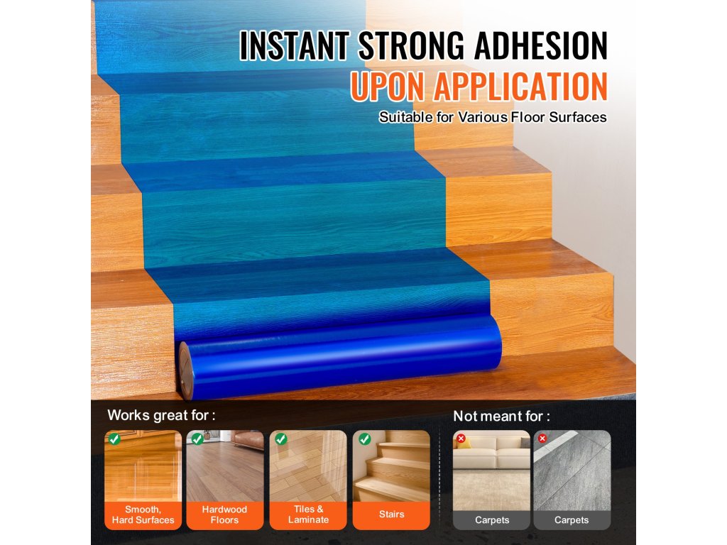 Ez a szőnyegvédő kiváló minőségű polietilén anyagból készült, könnyű és vékony, védi a padlót a foltoktól és a karcolásoktól. Erős adszorpció egy pálcikával, könnyen vágható és lerakható. Alkalmas csempékhez, fapadlókhoz, lépcsőkhöz és sok más helyszínre, ideális otthoni dekorációhoz és takarításhoz!