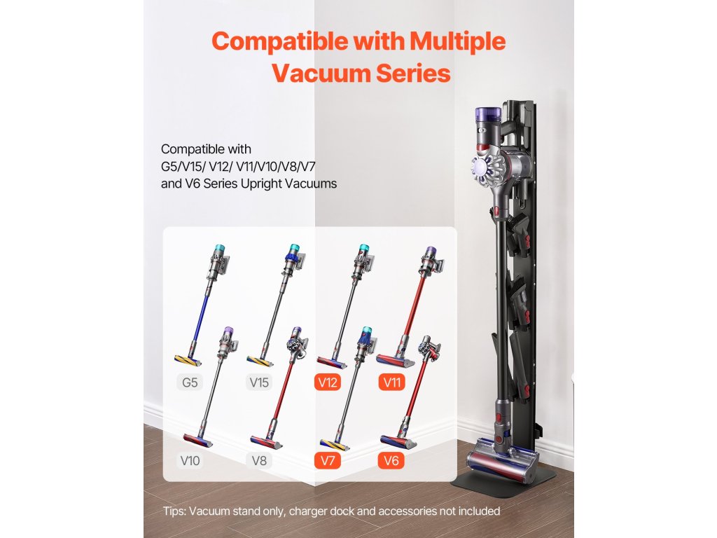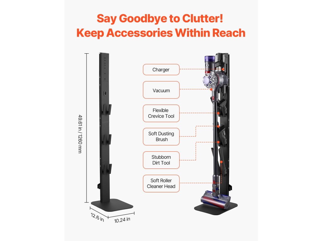 Akár a nappaliban, a hálószobában, a konyhában vagy a mosókonyhában, ez az állvány segít rendszerezni a porszívót és a tartozékokat, felszabadítva a padlót, és rendetlenségtől mentesen tartva az élettereket a tiszta otthonért.