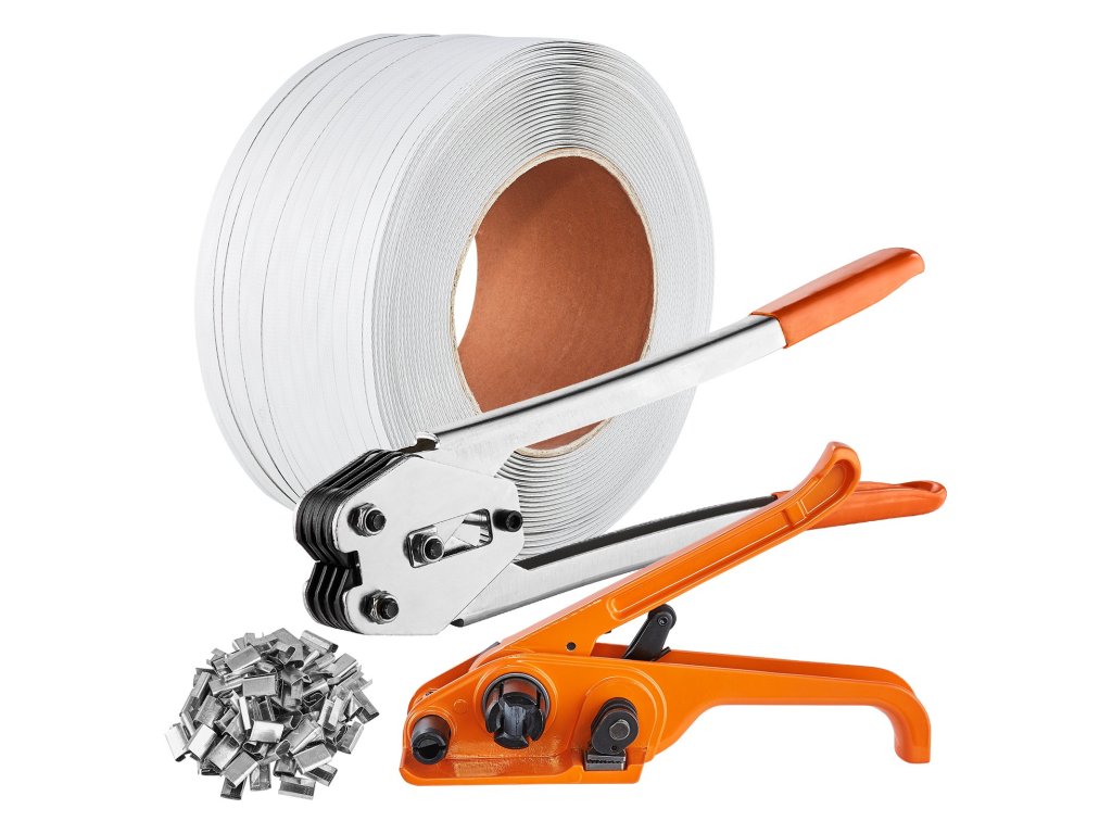 Pántológép-készlet 1000 m PP szalaggal, 1000 fémzárral