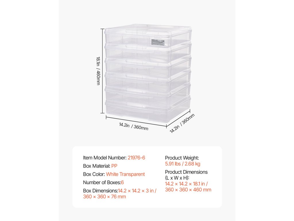 Ez a papírtároló szervező 6 tárolódobozt tartalmaz, amelyek mindegyike 14 x 14 hüvelyk méretű. A tágas kialakítás könnyedén befogadja a különböző tárgyakat, így tökéletes választás az életed megszervezéséhez.