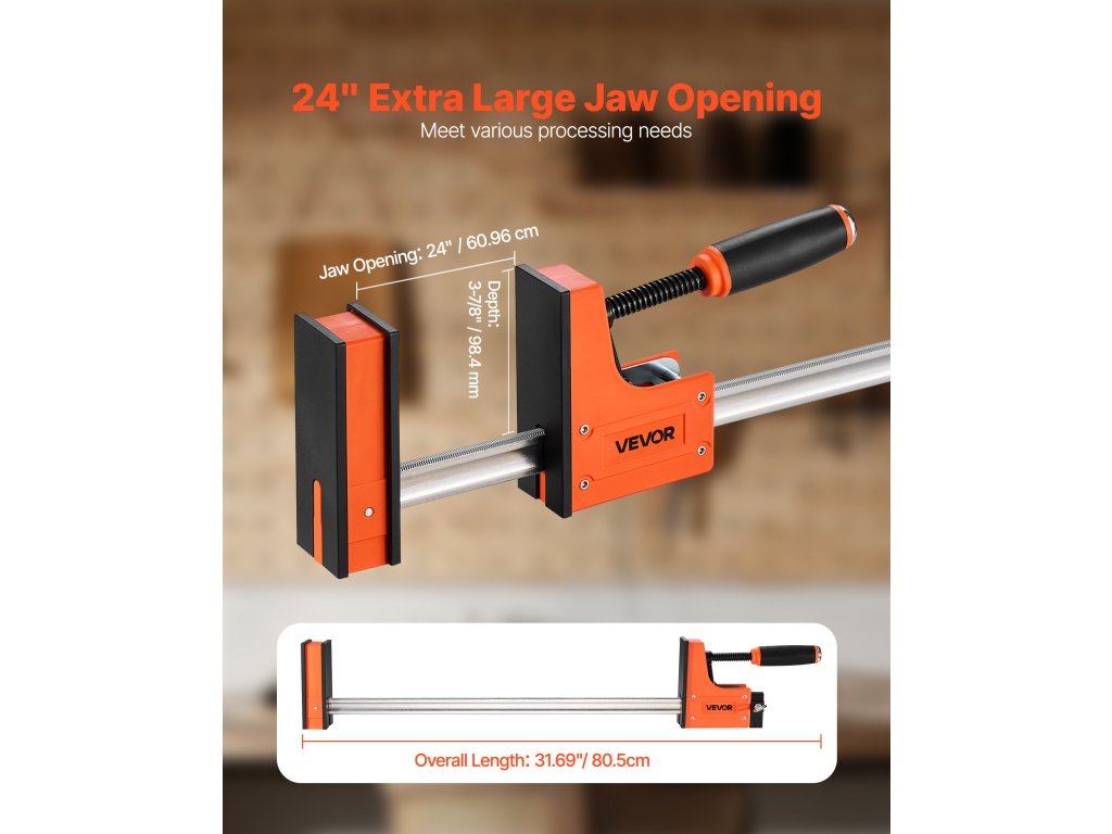 A 24 hüvelykes lyukasztó rúdbilincsek pofáit úgy tervezték, hogy különféle fa- és fémmunkákhoz használhatók legyenek. A nagy furat biztosítja a pontos pozicionálást a megmunkálás során.