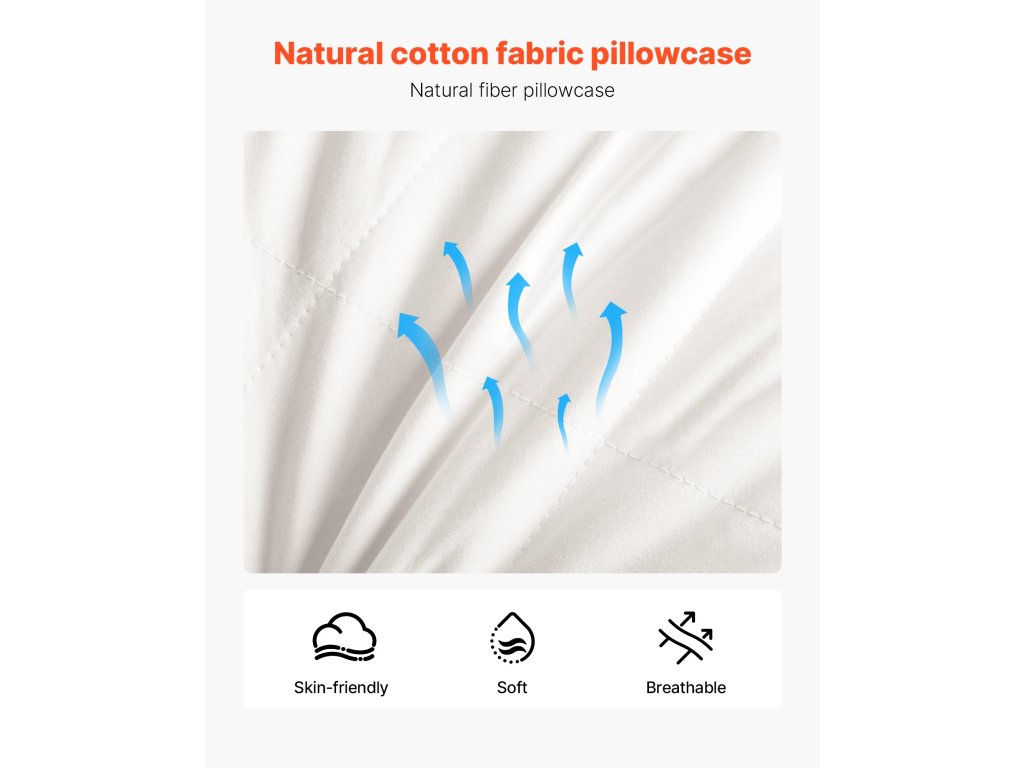 Puha párnánk természetes pamutanyaga bőrbarát, puha és légáteresztő, egész évben száraz és friss érzéssel garantálja a kényelmet.
