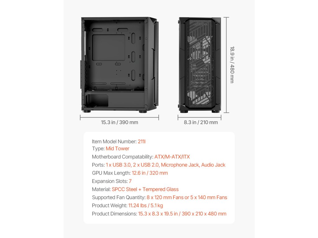 211I Mid Tower Gaming számítógépház, lelkes játékosoknak tervezve