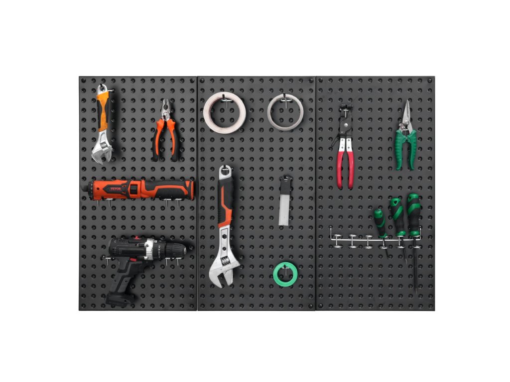 A fém tűlemezben rengeteg hely van, így különféle kampókkal, tartókkal és alkatrésztálcákkal párosítható. Legyen szó nagyméretű szerszámokról vagy apró alkatrészekről, könnyen megtalálja mindennek a tökéletes helyet.