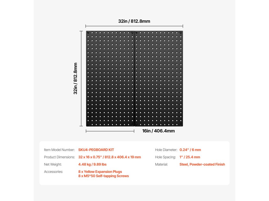 Kiváló teherbírásának köszönhetően ez a fém akasztótábla biztosítja a stabilitást, akár autójavító szerszámokat akaszt fel a garázsban, akár termékeket mutat be a barkácsáruházban, így nyugalmat biztosít Önnek.