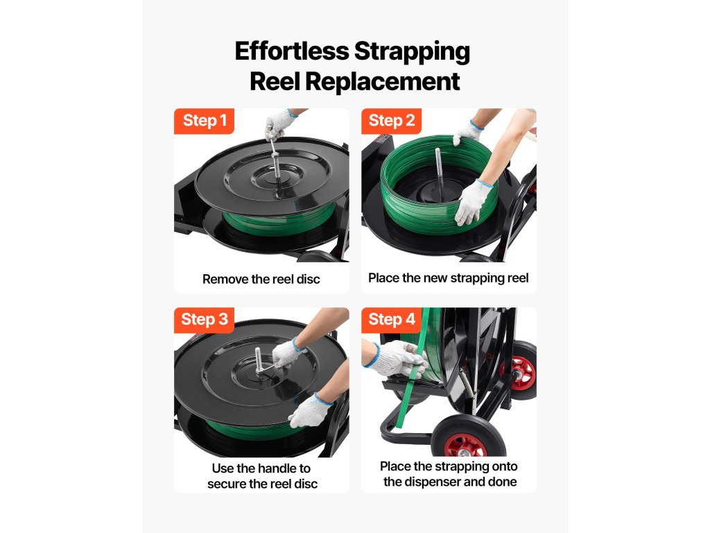 8,3 hüvelykes gumikerekekkel van felszerelve a könnyű mozgatáshoz bármely helyre, csökkentve az erőfeszítést és növelve a szalagozás hatékonyságát.