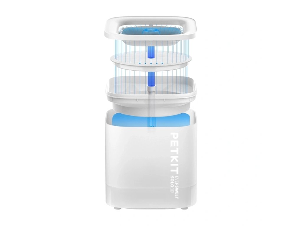 A PetKit Eversweet SOLO SE 3.0 szűrőrendszert használ, amely több összetevőből áll a víz alapos tisztítása érdekében. Egy sűrű hálós rész hatékonyan szűri ki a szőrt és a port, míg egy kókuszhéjból és aktív szénből álló réteg eltávolítja a szagokat és javítja a víz ízét. Eközben a harmadik szűrőelem ioncserélő gyantát használ a nehézfémek eltávolítására és a macskák betegségekkel szembeni védelmére.