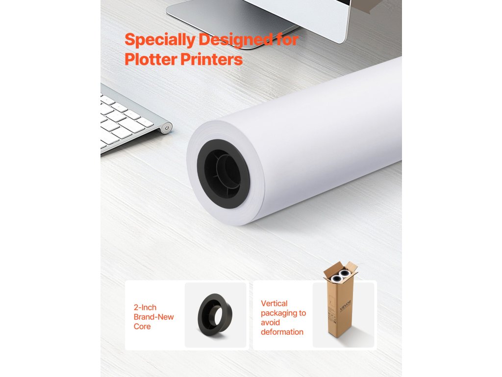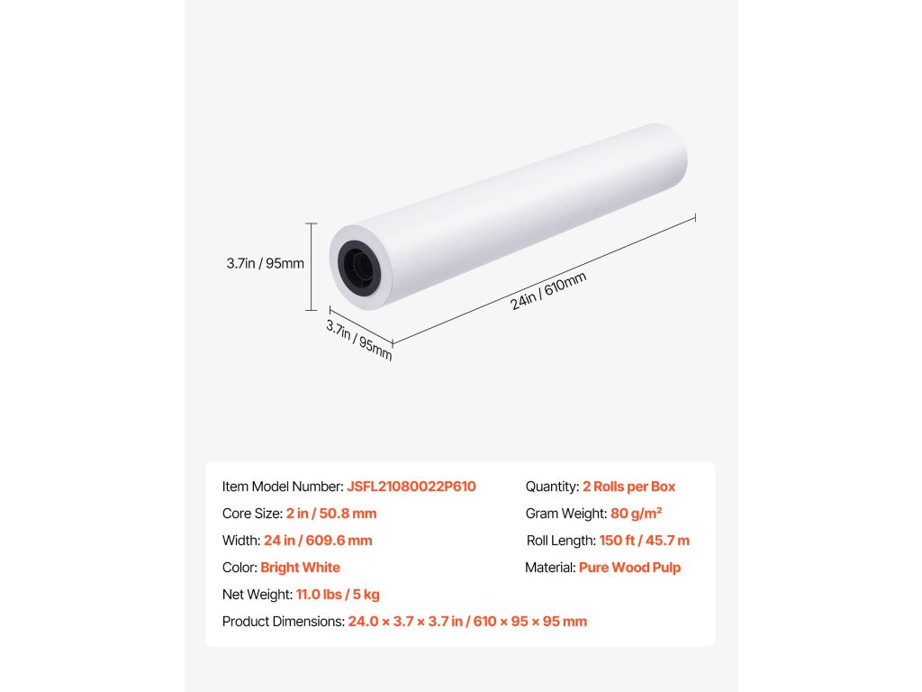 Ez a nagy formátumú papírcsomag két tekercset tartalmaz, egyenként 24 hüvelyk széles és 150 láb hosszú, pontos 80 g/m2-es méréssel az egyenletes, kiváló minőségű eredmények érdekében. A két hüvelykes mag a legtöbb szabványos plotternyomtatóhoz alkalmas.