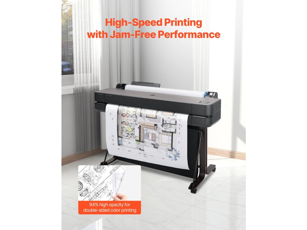 Plotterpapír tekercsünk függőlegesen van becsomagolva, hogy a mag sértetlen és deformálatlan maradjon. Akár 94%-os átlátszóságot garantál a tiszta, zökkenőmentes, kétoldalas színes nyomtatáshoz.