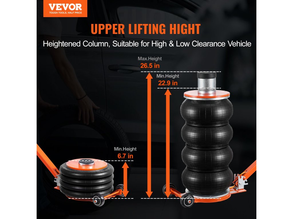 A pneumatikus emelő nagy emelőkapacitással rendelkezik, ami lehetővé teszi a legtöbb jármű megemelését. A hagyományos emelőkhöz képest a légemelő időtakarékosabb és könnyebben használható. Az állítható fogantyú három szögben állítható, ami kényelmes a karbantartási használathoz.