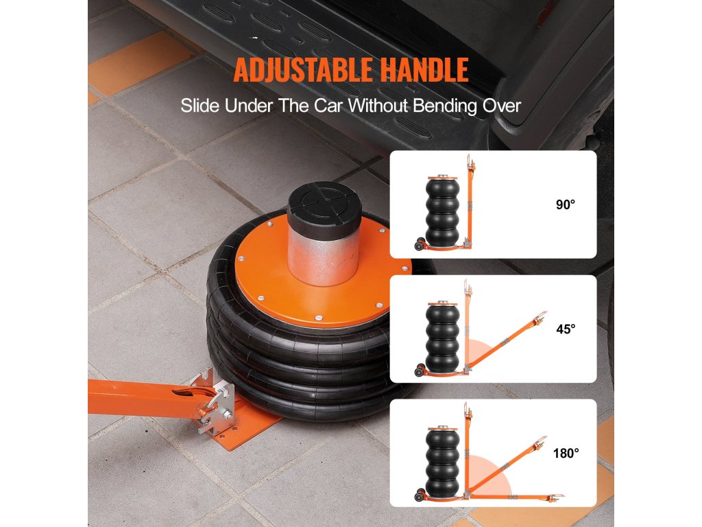 A három pozícióba állítható hosszabb fogantyúval ez a légemelő megkönnyíti a munkát. Tárolja függőlegesen, 90°-os szögben, hogy szűk helyeken is elrejtse, vagy használja a 45°-os vagy 180°-os szöget a könnyű mozgatáshoz, magasságtól függetlenül. Minden szerelő vagy barkácsoló számára alkalmas.