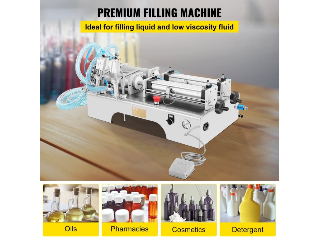 Töltőanyagainkat széles körben használják az élelmiszer- és italgyártásban, a kozmetikai, testápoló, mezőgazdasági, gyógyszeripari és vegyipari területeken. Ideális berendezés folyadékok és alacsony viszkozitású folyadékok töltésére. A berendezéshez egy légkompresszort kell csatlakoztatni a működéshez.