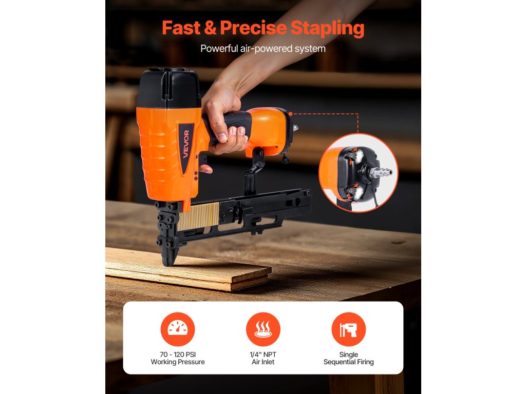 Ideális falburkoláshoz, kerítés- és aljzatépítéshez, tetőfedéshez, bútorkeretekhez, rétegelt lemezkeret-szereléshez, tálcák, ládák és dobozok összeszereléséhez, vinil vázszerkezethez és még sok máshoz. Használatához légkompresszorhoz kell csatlakoztatni (a légkompresszor nem tartozék).