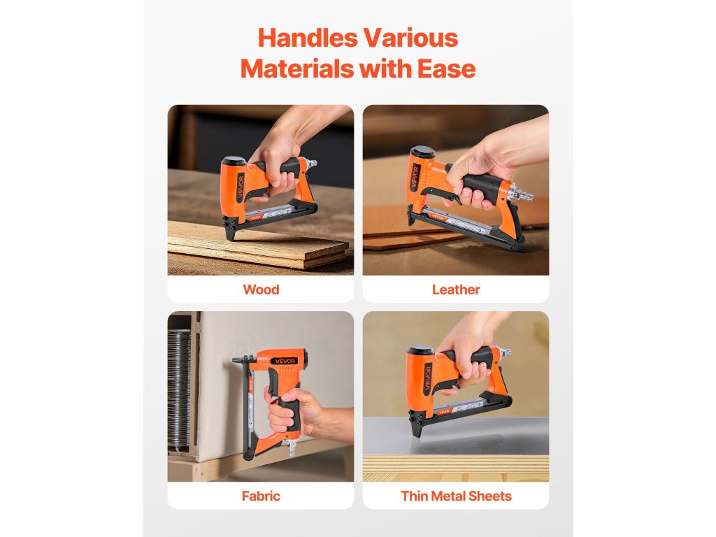 Alkalmas kárpitozáshoz, könnyű bútorszereléshez, famegmunkáláshoz, szekrények összeszereléséhez, képkeretezéshez, szegélyek beszereléséhez, kanapé- és székkészítéshez és egyéb barkácsmunkákhoz. Használatához légkompresszorhoz kell csatlakoztatni (a légkompresszor nem tartozék).