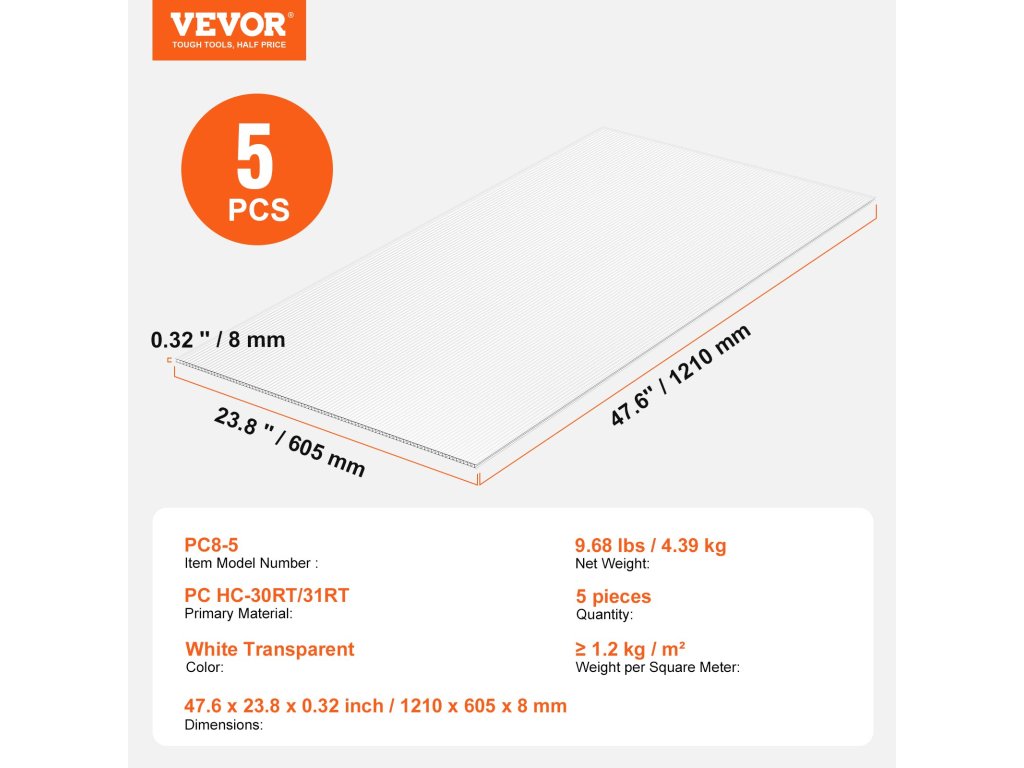 Az UV-védelemmel ellátott, rendkívül átlátszó polikarbonát elegendő fényt biztosít, blokkolja az UV-sugarakat és elősegíti a növények növekedését. Könnyen telepíthető, alkalmazkodó és energiatakarékos, egész évben szigetelést és biztonságot nyújt.