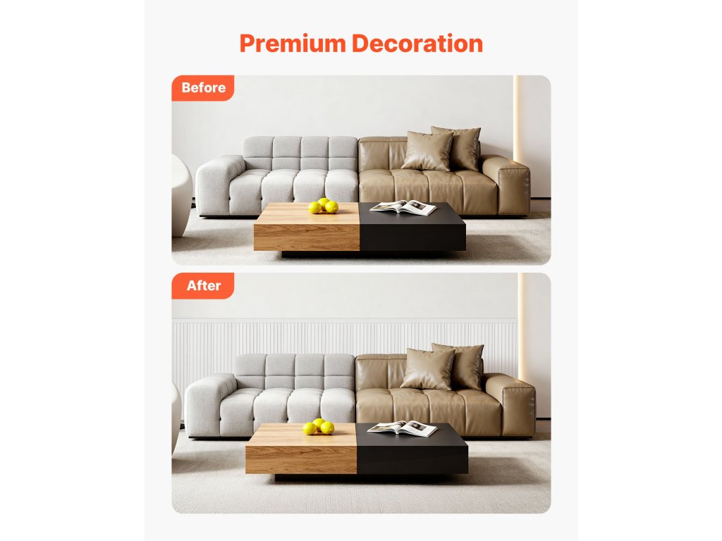 Egy pillanat alatt átalakítja a szobáját. A karcsú vonalak kifinomult kontúrokat hoznak létre, amelyek elegáns megjelenést kölcsönöznek a térnek anélkül, hogy vállalkozót kellene felbérelnie, aggódnia kellene a rendetlenség miatt, vagy heteket kellene töltenie a felújítással. Ez a falipárkány-készlet segítségével könnyedén lenyűgöző eredményt érhet el.