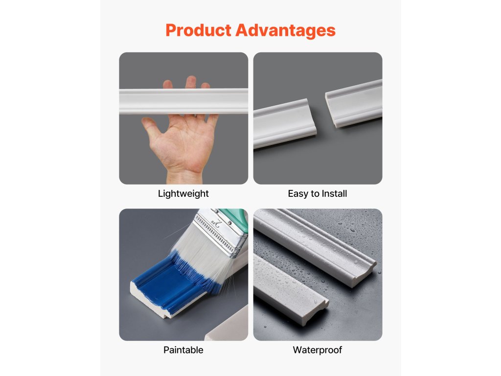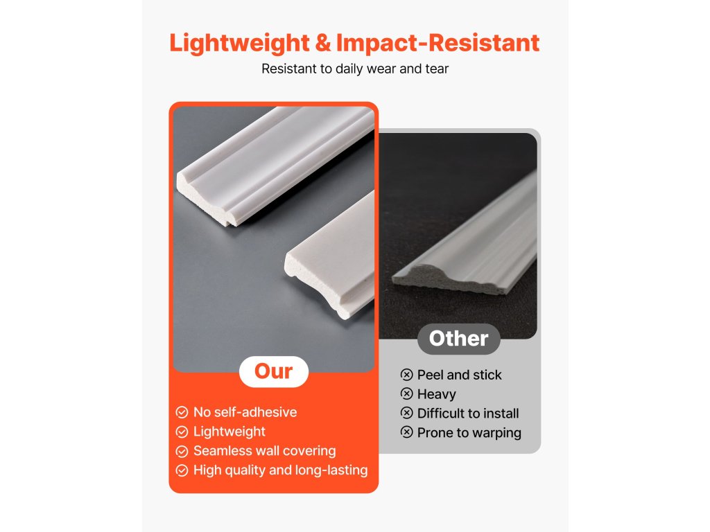 Ez a fali díszléc készlet előre kivágott díszlécrészeket tartalmaz a zökkenőmentes és egyszerű felszerelés érdekében. Akár egy hétvégi bérelt lakást újít fel, akár a házát korszerűsíti, minden részletet úgy terveztünk, hogy már az első próbálkozással magazinos eredményt érjen el.