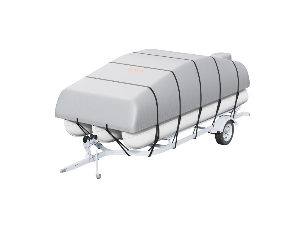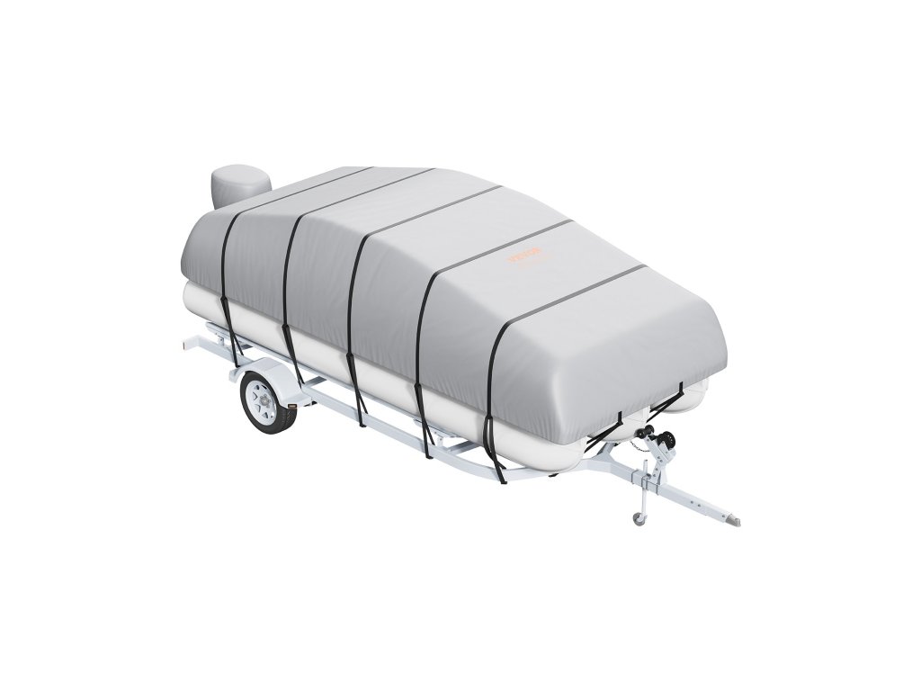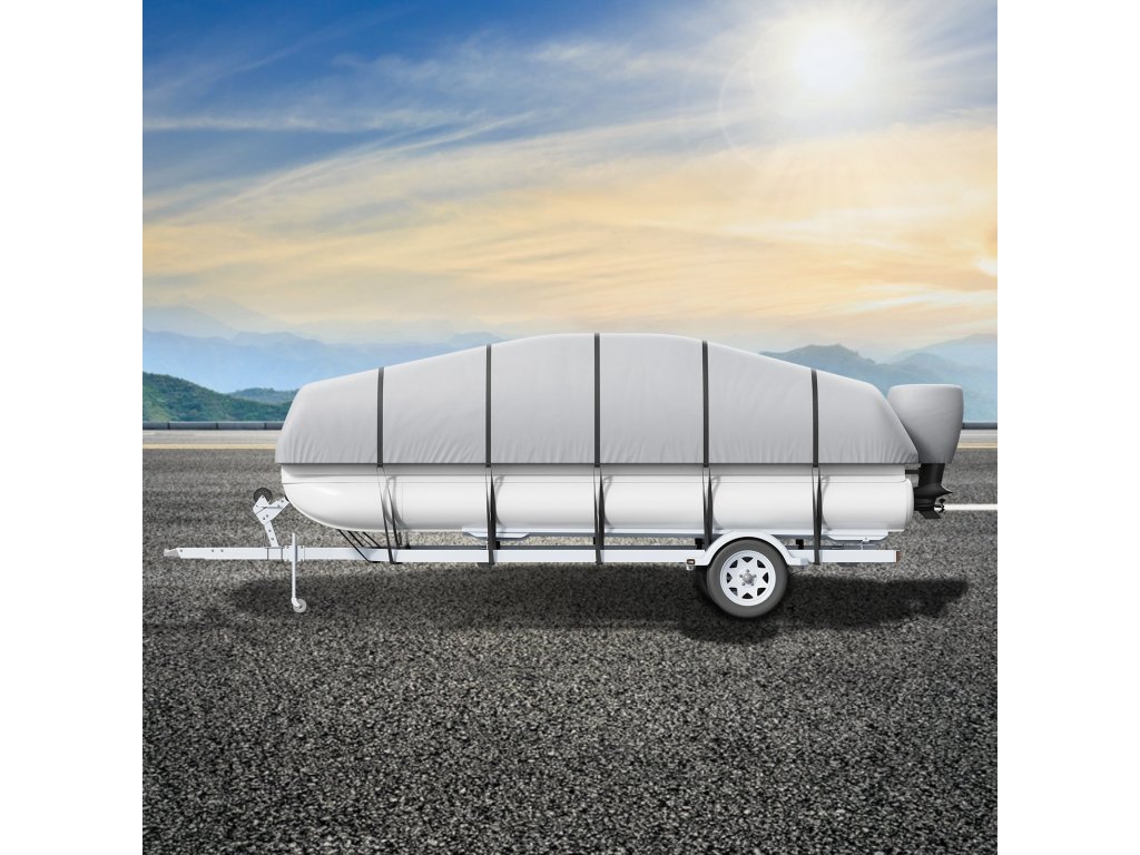 A pontoncsónak pótkocsi borításunk erős pántos kialakítással rendelkezik fentről lefelé a biztonságos illeszkedés érdekében. A vastag rugalmas szegély a csónak méreteihez igazodik. Ez a kettős megerősítés még szélsőséges időjárási körülmények, például viharok és szélviharok esetén is biztosítja a stabilitást, és megvédi hajóját a sérülésektől.