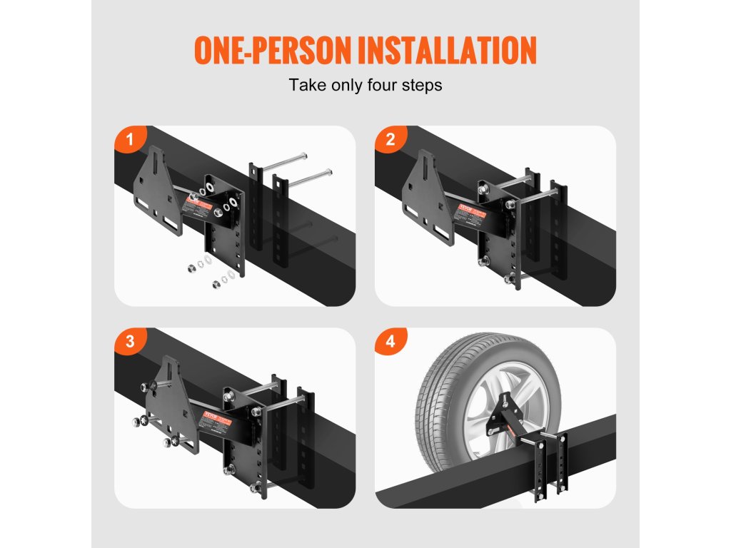 A 160 kg teherbírású pótkeréktartónk ideális a nagy kerekek szállítására. Bevonattal és horganyzással van ellátva, hogy hatékonyan ellenálljon az esőnek és a zord kültéri körülményeknek.