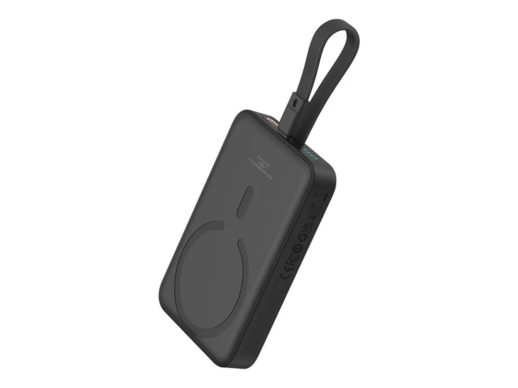 A beépített USB-C kábel kettős célt szolgál, mivel lehetővé teszi a telefon és a power bank töltését is. Ezenkívül a kábel visszadugható a powerbank portjába, így egy praktikus hurkot hozva létre, amely hordozószíjként is használható. Ez a megoldás további funkciókat biztosít, és még kényelmesebbé teszi a power bank használatát.