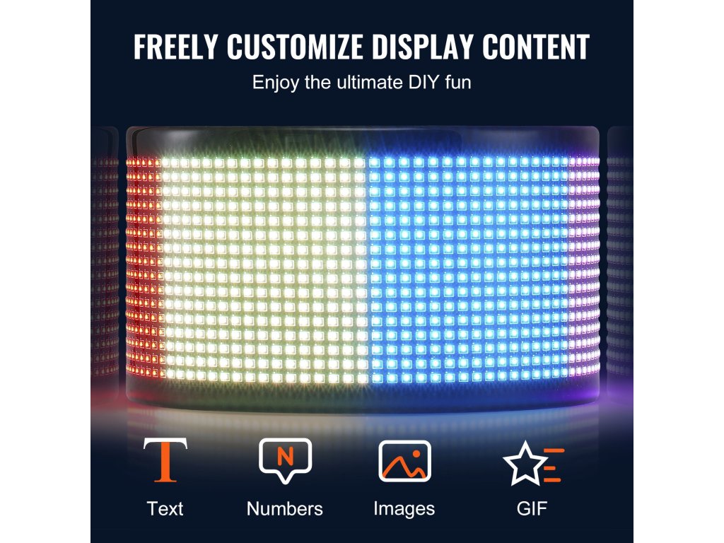 Saját igényei és forgatókönyvei szerint tervezhet saját szöveget, mintákat és GIF-eket, valamint beállíthatja a fényerőt és a sebességet, hogy tökéletesen megfeleljen saját igényeinek.
