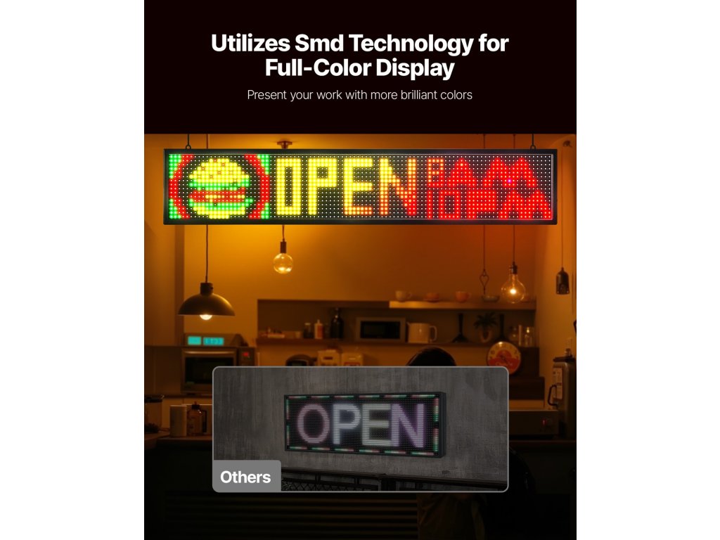 Az SMD-technológiát használó színes LED-reklámtáblák jobban megjelenítik munkáját, és növelik láthatóságát bevásárlóközpontokban, szupermarketekben és kirakatokban a legkülönbözőbb kereskedelmi környezetekben.