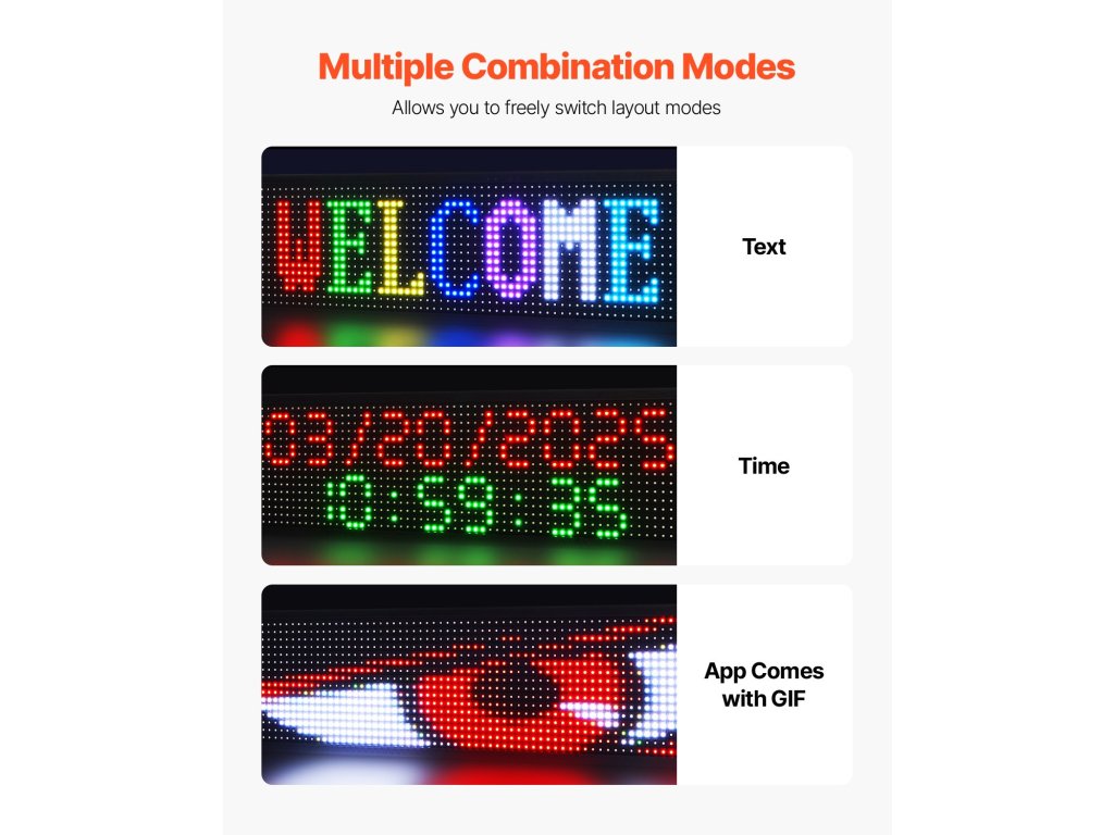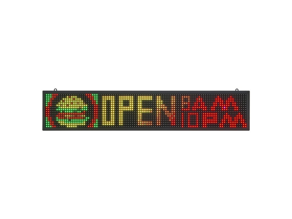 Támogatja a görgethető szöveget, időket és GIF-eket. A színes, dinamikus szövegmegjelenítések megragadják a járókelők figyelmét.