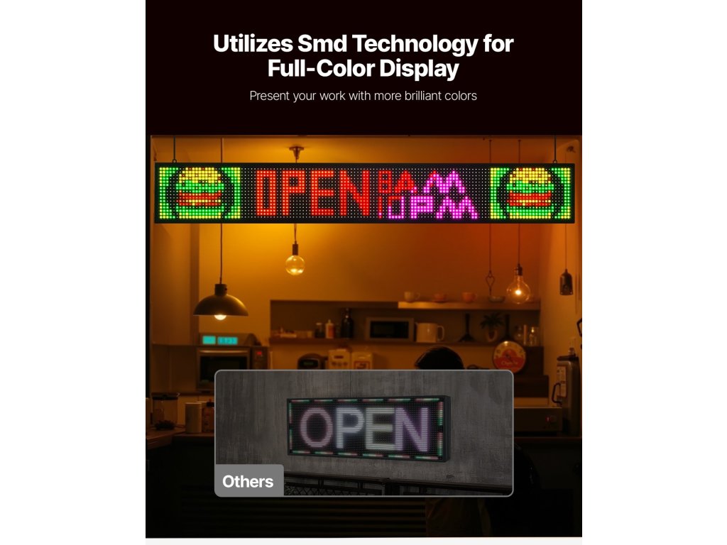 Az SMD-technológiát használó színes LED-reklámtáblák jobban megjelenítik munkáját, és növelik láthatóságát bevásárlóközpontokban, szupermarketekben és kirakatokban a legkülönbözőbb kereskedelmi környezetekben.