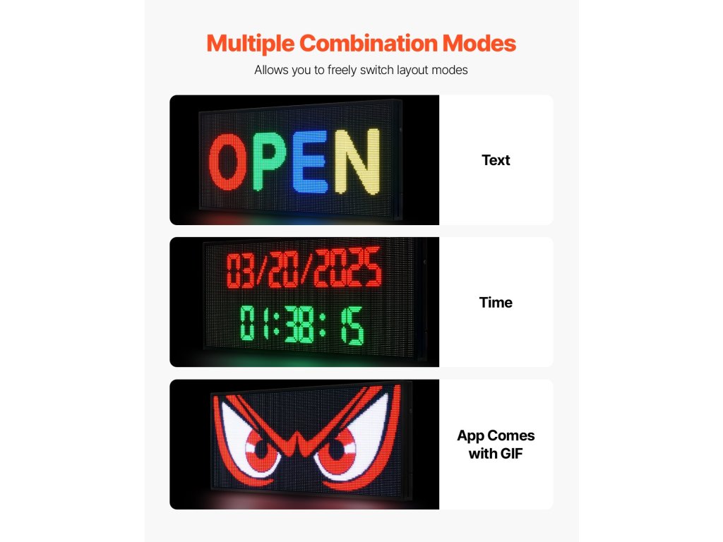 Támogatja a görgethető szöveget, időket és GIF-eket. A színes, dinamikus szövegmegjelenítések megragadják a járókelők figyelmét.
