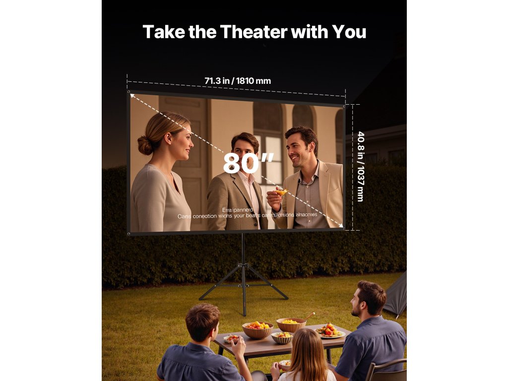 Projektorvászon állványon, 80 hüvelykes, 16:9-es, 4k-s kültéri, takarófóliával
