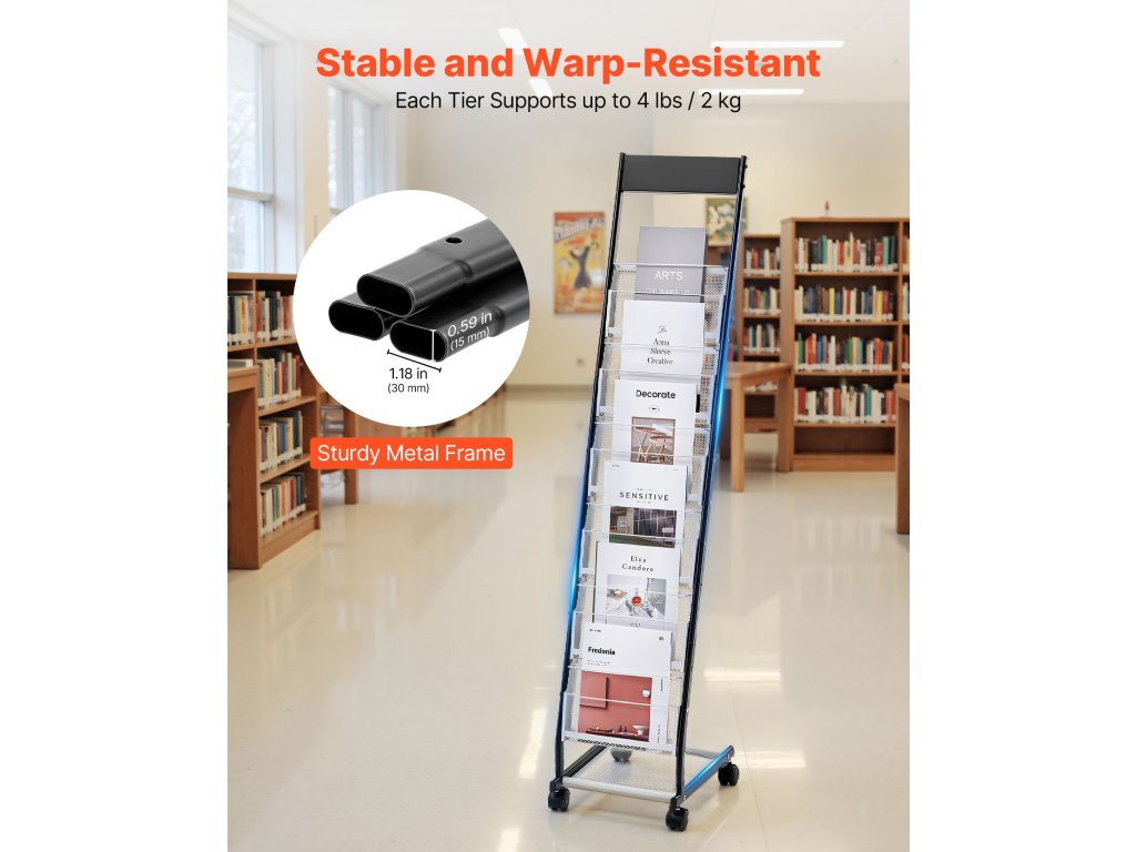 Minden egyes réteg akár 4 font/2 kg-ot is elbír, így könnyedén megtámasztja a különböző vastagságú dokumentumokat, anyagokat és brosúrákat. Még több egymásra helyezett mappa esetén is szilárdan áll az irodalom bemutató állvány, anélkül, hogy félnie kellene a leeséstől vagy a borulástól. Az erős teherbírás garantálja a stabilitást és a megbízhatóságot.