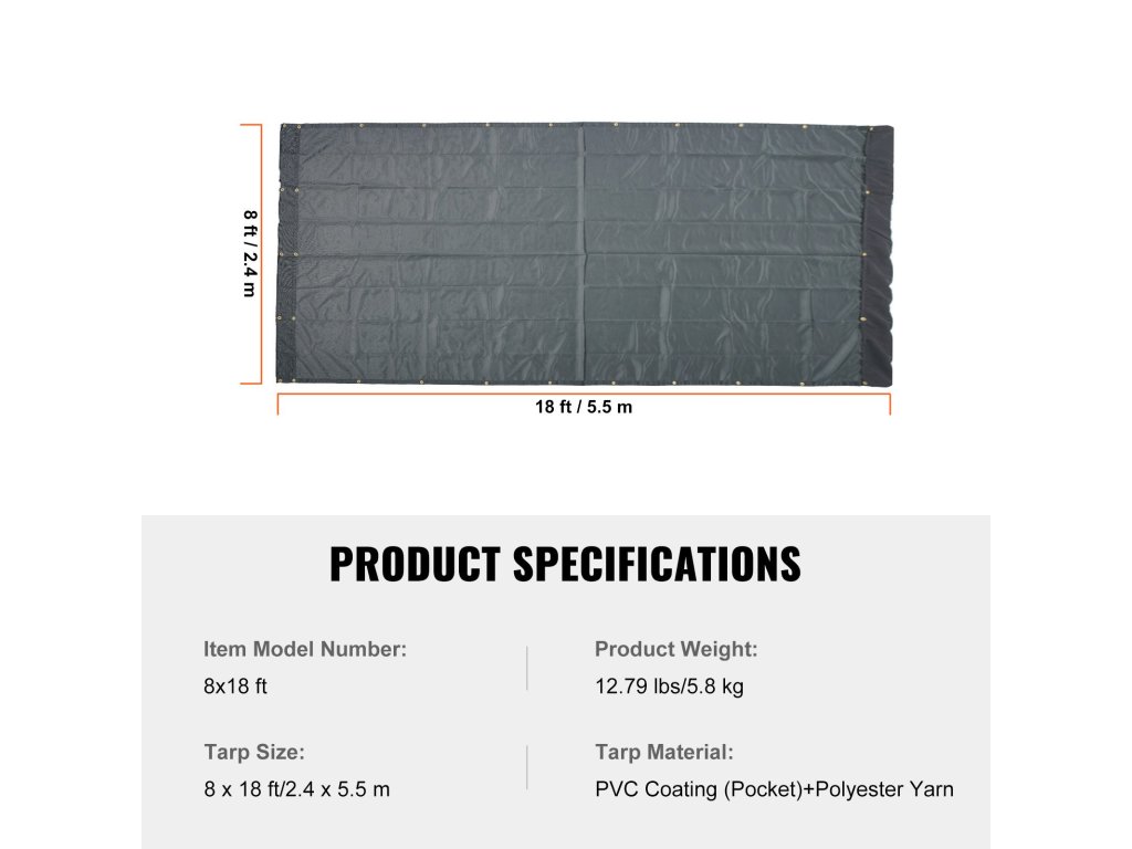 PVC ponyva összecsukható rendszerhez 8×18 láb, fekete, 5,5" 18oz
