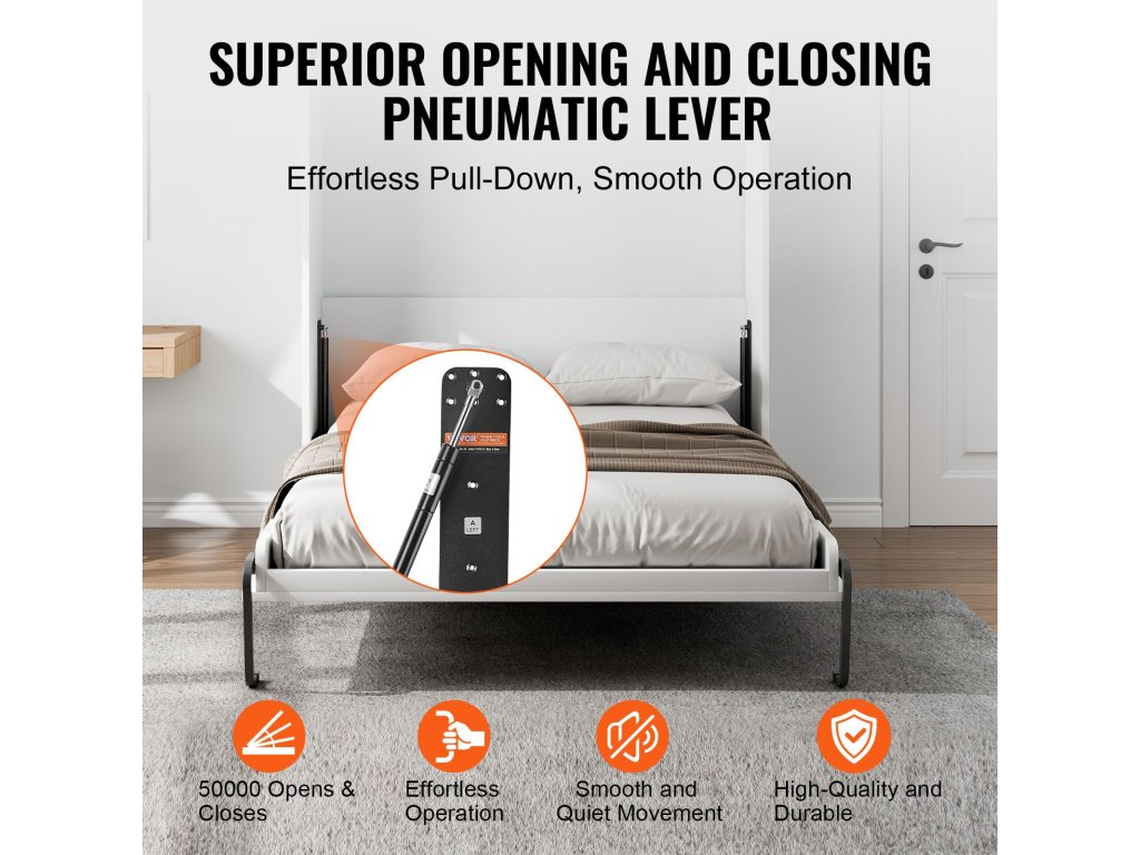 A falra szerelhető ágyemelő készlet egy barkácsolók számára tervezett helytakarékos megoldás, amely tágas tárolóhelyet biztosít az ágy alatt, hogy rendet tegyen holmijai között, ideális a korlátozott lakóterű felhasználók számára.