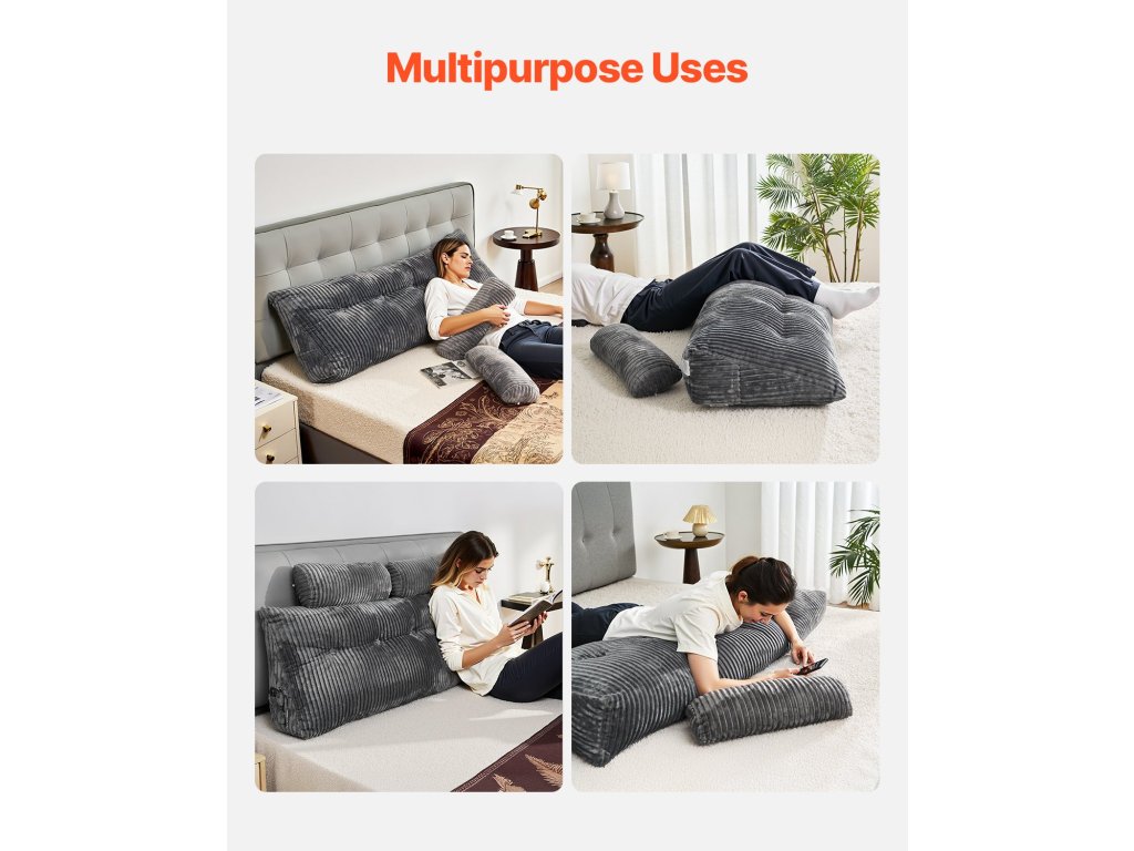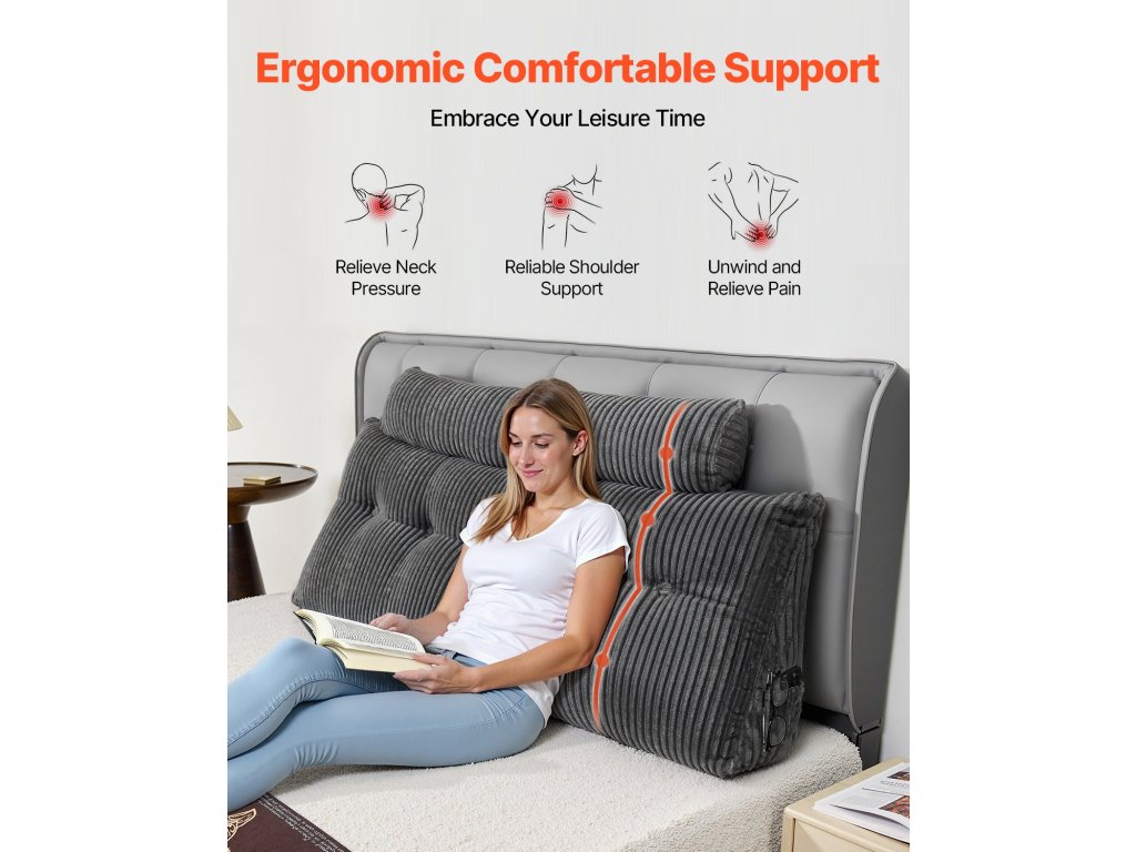 Queen méretű ék alakú párna 2 oldalsó zsebbel és 2 háttámlával, mosható
