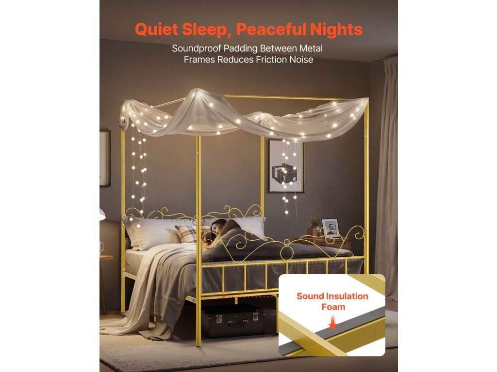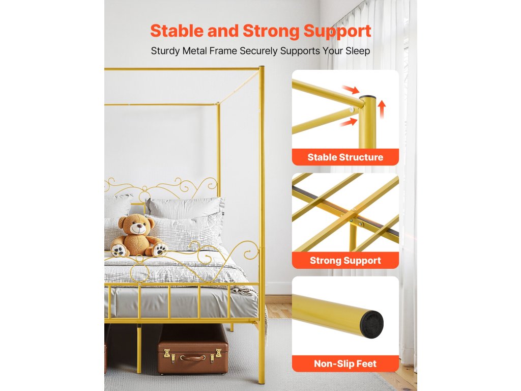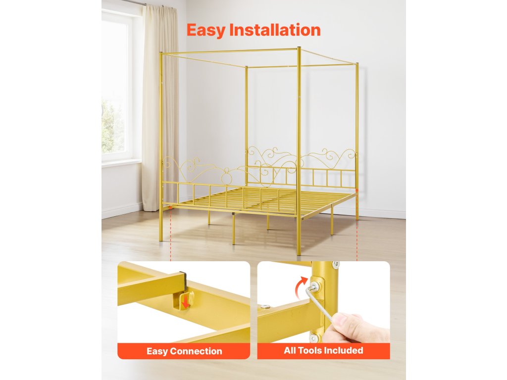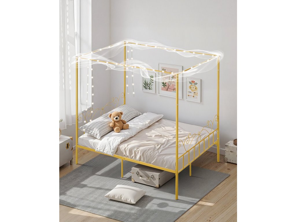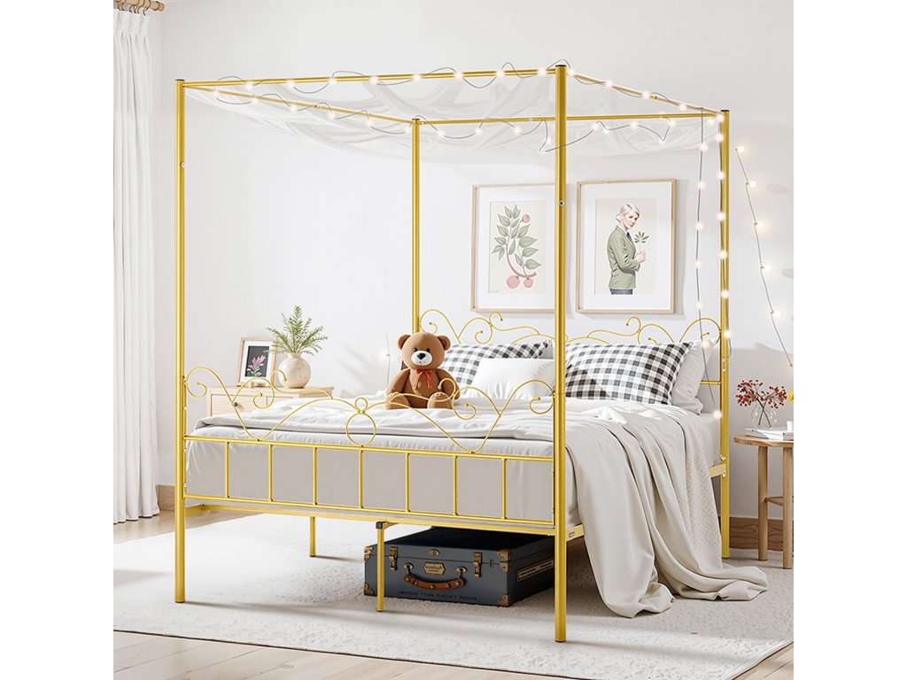 Queen méretű fém baldachinos ágykeret, 4 oszlop, arany színben