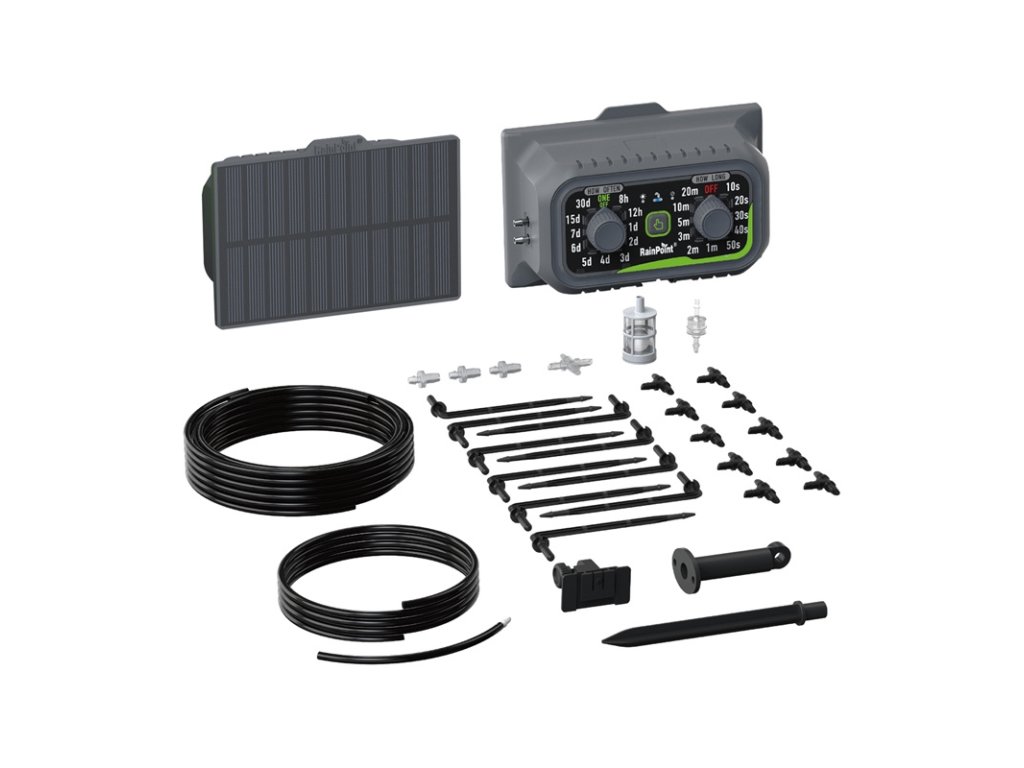 A RainPoint Kit egy fejlett napelemes csepegtető öntözőrendszer, amely egy nagy teljesítményű prémium membránszivattyú segítségével stabil nyomást és egyenletes öntözést biztosít akár 20 növény számára. Szárazüzemű, rövidzárlat- és túlterhelés elleni védelemmel ellátott intelligens chippel van felszerelve, ami további energiamegtakarítást és hosszú élettartamot biztosít. A programozható automatikus üzemmód lehetővé teszi, hogy az öntözési időt és gyakoriságot az Ön preferenciái szerint állítsa be, a nagy hatékonyságú monokristályos napelem pedig 360°-ban állítható szögben biztosítja a folyamatos áramellátást. A zökkenőmentes, vízálló kialakítás a könnyen hozzáférhető rögzítőfuratokkal biztosítja a könnyű telepítést és a megbízhatóságot bármilyen körülmények között, így a RainPoint ideális otthoni, üvegházi és erkélyi használatra.