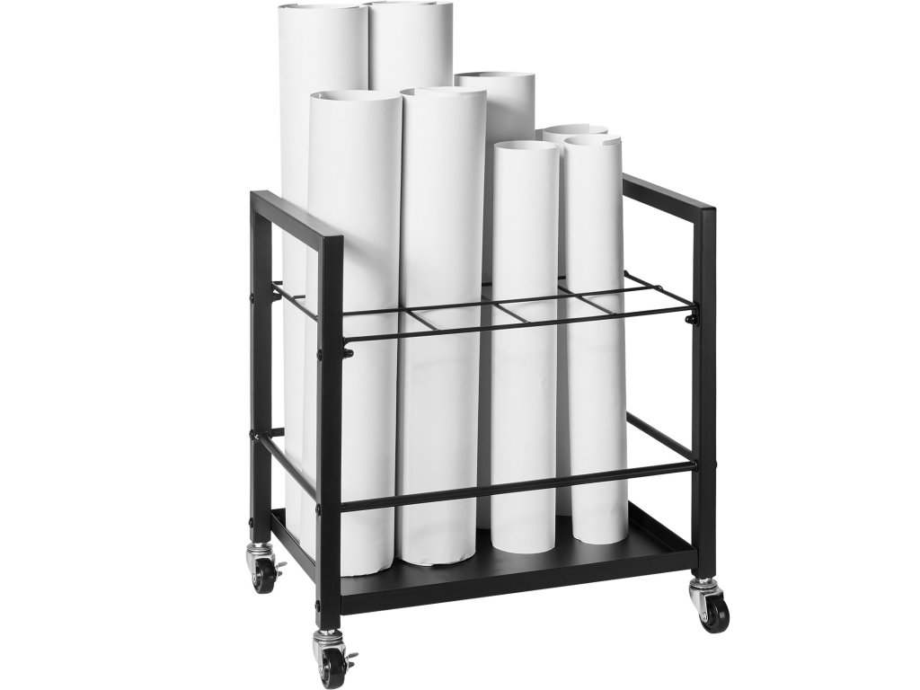 Rajzok és térképek tárolására szolgáló kocsi, fém, 12 rekesszel, kerekeken