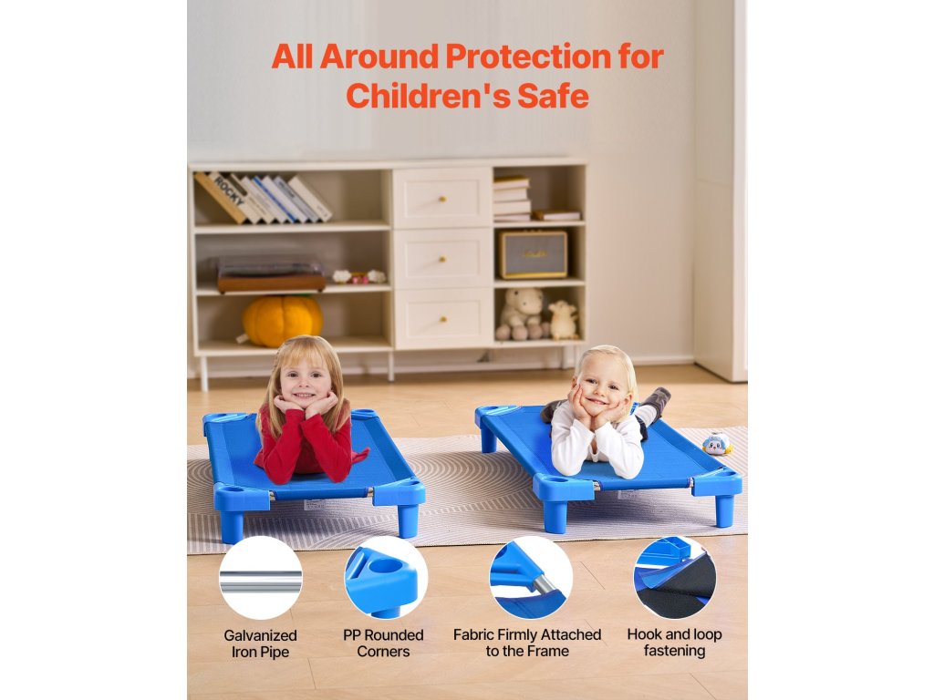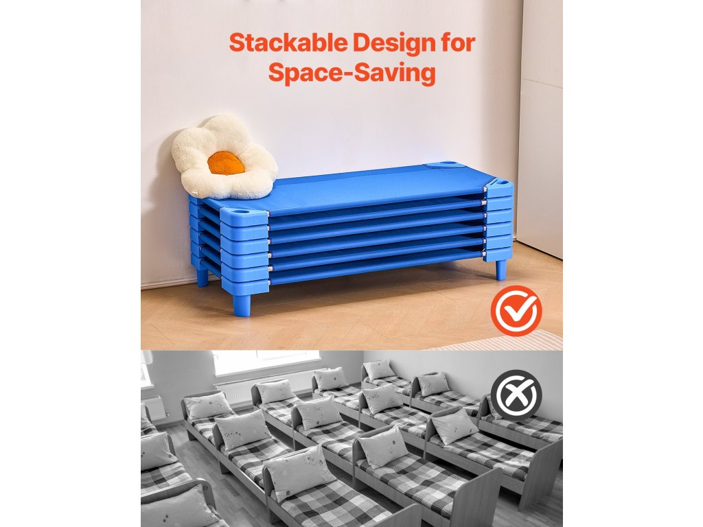 Ez a hordozható kisgyermek alvóágy 20 ágyasra összehajtható, így ideális helytakarékos elhelyezésre tantermekben, óvodákban, bölcsődékben, óvodákban vagy akár kempingben.