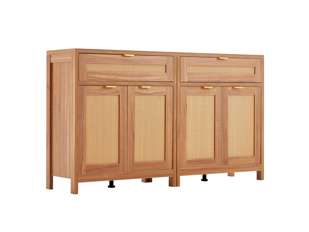 Rattan fiókos komód, 2 db-os szett, 4 mágneses ajtóval, 2 fiókkal és polcokkal