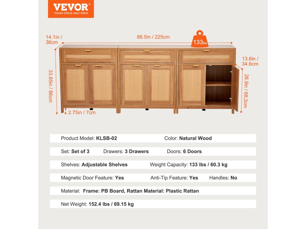 A büfé szekrényünk terhelhetősége legfeljebb 60,3 kg (133 font). A szekrényhez egy felborulásgátló készlet tartozik, és a használat előtt feltétlenül telepítse a felborulásgátlót a nagyobb stabilitás és biztonság érdekében.