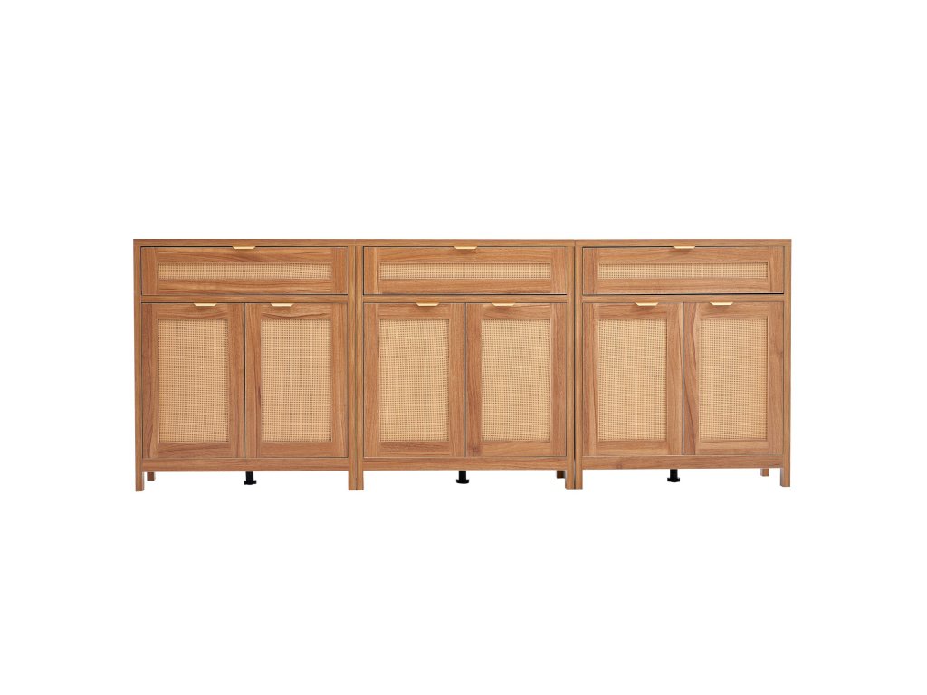 A tervező a vintage stílust modern esztétikával ötvözi, és kézzel szőtt rattan ajtókkal rendelkezik, amelyeket képzett kézművesek készítettek. A természetes rattan elnyeli a nedvességet és a hőt, tökéletes vizuális hatást nyújtva. Ideális kombinációjaként szolgál a kiállításnak és a tárolásnak.