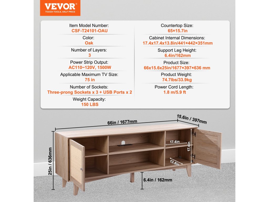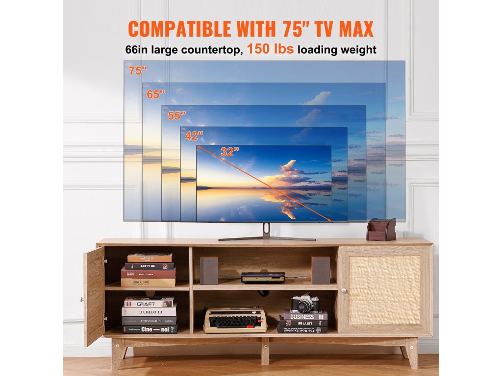 A 165 x 50 cm-es asztallapon egy 191 cm-es televízió is elfér, és akár 68 kg-ot is elbír. Amikor a rattan szórakoztatóközpontot nem a TV számára használják, akkor ideális dekorációs tárgyak elhelyezésére is.