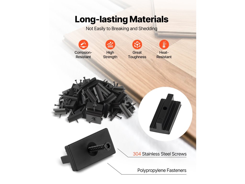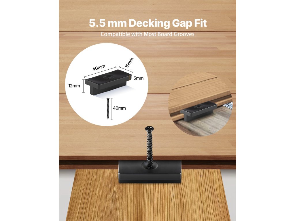 A legtöbb nagy márkával kompatibilisek, ezek a fekete rögzítőelemek diszkrétek maradnak, hogy tiszta és professzionális fedélzeti felületet biztosítsanak. Hőálló polipropilénből és 304 rozsdamentes acélból készülnek, és bármilyen időjárási körülmények között tartósak. Megbízható választás a szilárd, hosszú élettartamú fedélzetépítéshez.